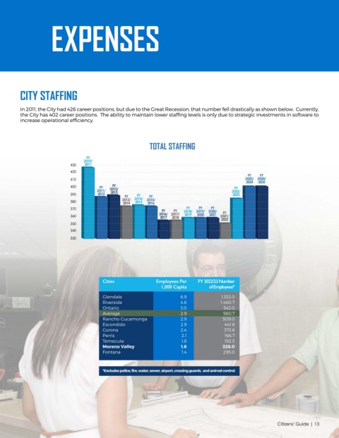 the City has 402 career positions. The ability to maintain lower staffing levels is only due to strategic investments in software to